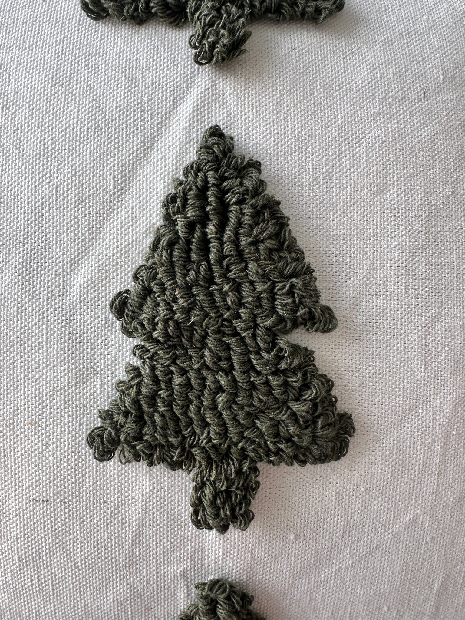 Bring cozy holiday charm to your home with our handcrafted 18" white canvas pillow cover, featuring raised forest green tufted Christmas trees. The soft textured embroidery adds a festive touch while keeping your space modern and minimal.