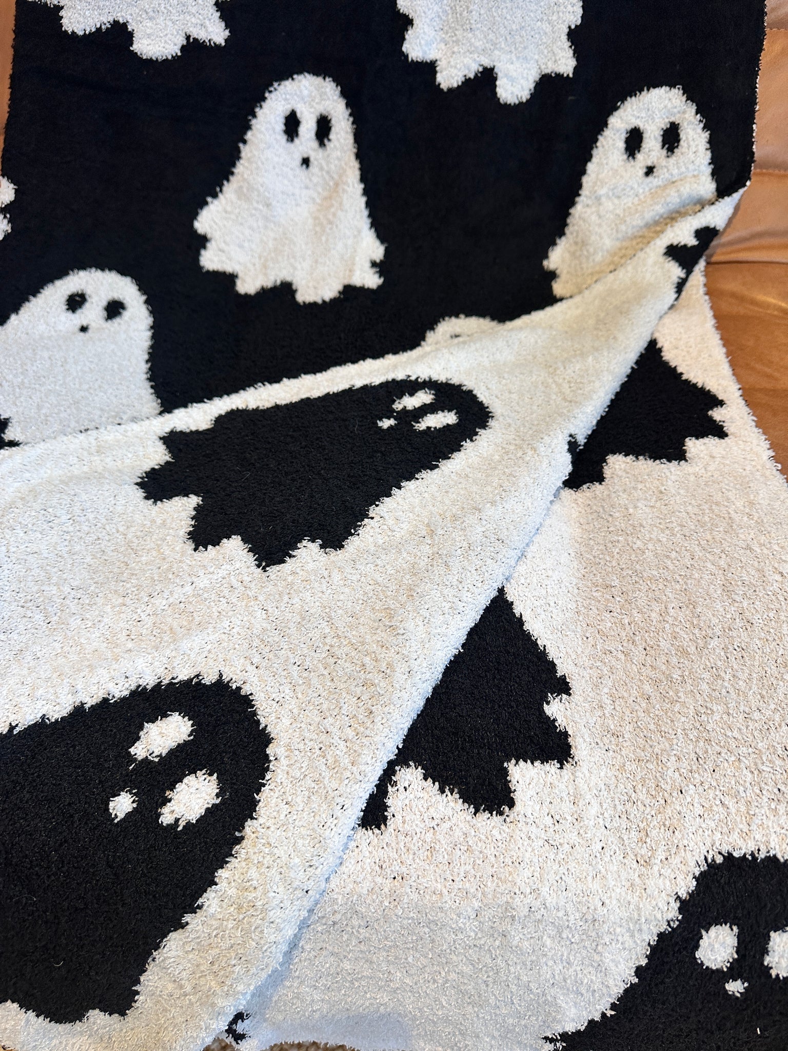 Add a playful, spooky touch to your home with our Black & White Ghost Throw Blanket (50x60”). Made from soft, fluffy microfiber polyester, this blanket feels cozy like a cloud while offering high-quality durability. Featuring a charming ghost pattern on a bold black backdrop, it’s the perfect accent for your sofa, bed, or favorite chair during the Halloween season.